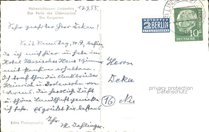 72592296 alte Postkarte Lindenfels Odenwald Kurgarten postalisch gelaufen Erhaltung siehe scans [AndreD76] KatCode: 11110006431015