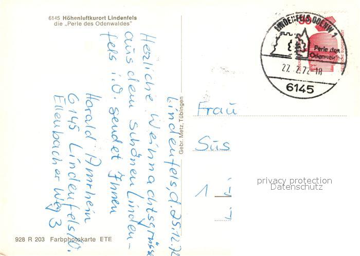 73125436 alte Postkarte Lindenfels Odenwald Landschaftspanorama Perle des Odenwaldes postalisch gelaufen Erhaltung siehe scans [FriedD77] KatCode: 11110006431015