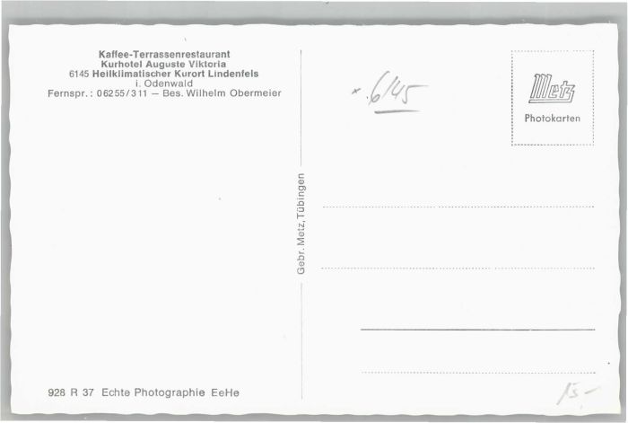 40673996 Lindenfels Odenwald Lindenfels Cafe Terrassenrestaurant Kurhotel Auguste Viktoria KatCode 11110006431015