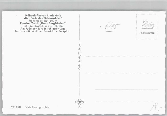 40673965 Lindenfels Odenwald Lindenfels Pension Trunk Haus Burgfrieden KatCode 11110006431015