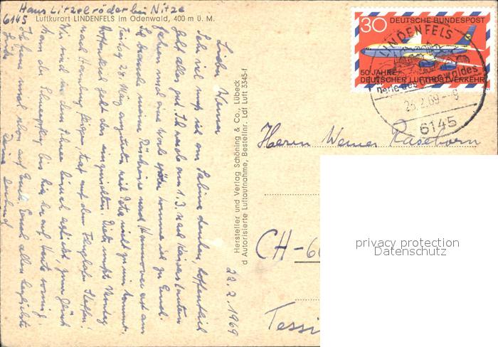 72580282 alte Postkarte Lindenfels Odenwald Luftaufnahme Luftkurort postalisch gelaufen Erhaltung siehe scans [KathaD79] KatCode: 11110006431015