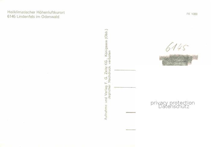 72844346 Lindenfels Odenwald Ortsmotiv mit Burgruine postalisch nicht gelaufen Erhaltung siehe scans [FriedD77] KatCode: 11110006431015