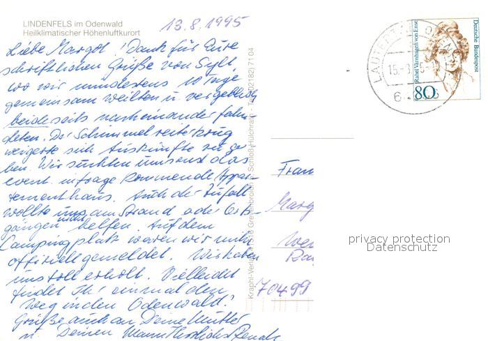 73208100 alte Postkarte Lindenfels Odenwald Panorama postalisch gelaufen Erhaltung siehe scans [WerneD78] KatCode: 11110006431015