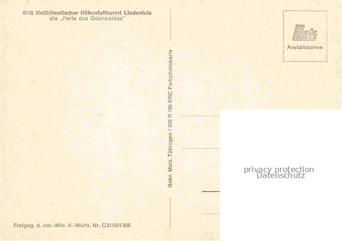 74040444 Lindenfels Odenwald Panorama Heilklimatischer Hoehenluftkurort Die Perle des Odenwaldes postalisch nicht gelaufen Fliegeraufnahme Erhaltung siehe scans [FriedD77] KatCode: 11110006431015
