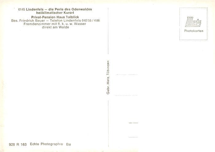 73878545 Lindenfels Odenwald Pension Haus Talblick Heilklimatischer Kurort postalisch nicht gelaufen Erhaltung siehe scans [FriedD77] KatCode: 11110006431015