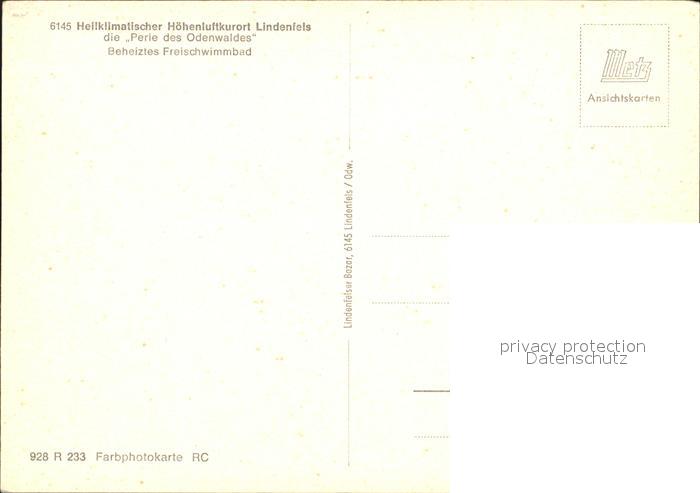 72062739 Lindenfels Odenwald Schwimmbad postalisch nicht gelaufen Erhaltung siehe scans KatCode: 11110006431015