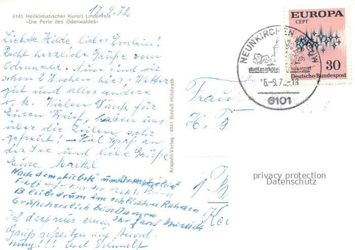74025879 alte Postkarte Lindenfels Odenwald Teilansicht Heilklimatischer Kurort Perle des Odenwaldes postalisch gelaufen Fliegeraufnahme Erhaltung siehe scans [FriedD77] KatCode: 11110006431015