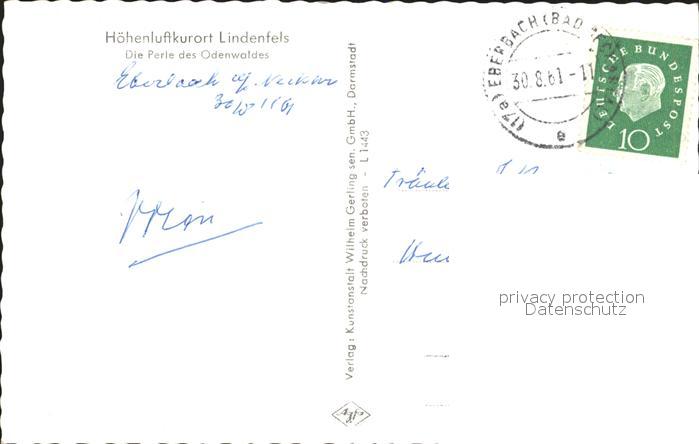 72074836 alte Postkarte Lindenfels Odenwald Teilansicht mit Burgruine Turm Kirche Hoehenluftkurort postalisch gelaufen Erhaltung siehe scans KatCode: 11110006431015