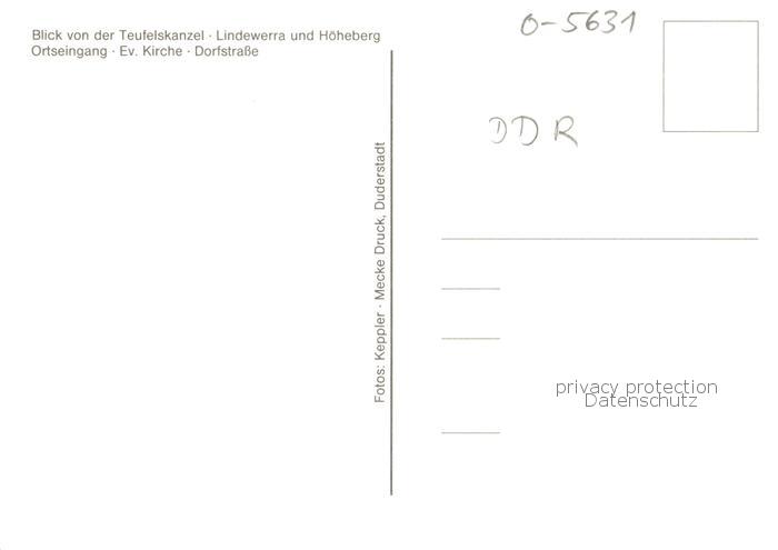 73840284 Lindewerra Panorama von der Teufelskanzel Lindewerra und Hoeheberg Ortseingang Ev Kirche Dorfstrasse postalisch nicht gelaufen Erhaltung siehe scans [WerneD78] KatCode: 11110016061066