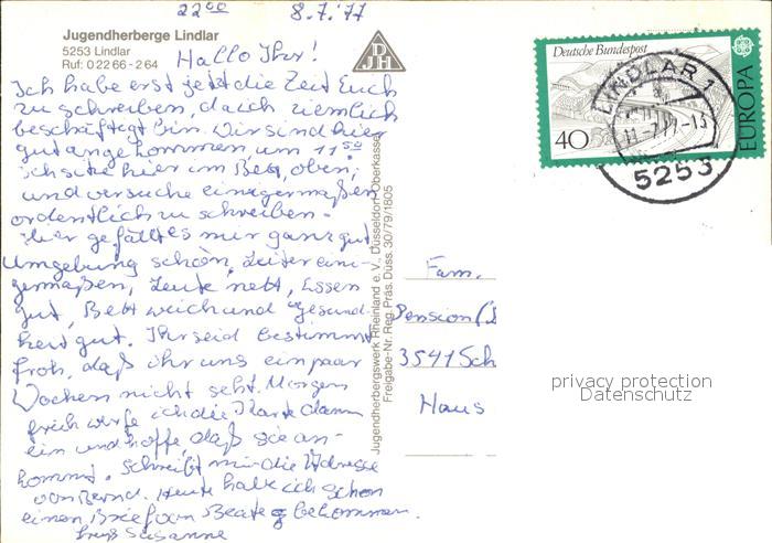72105169 alte Postkarte Lindlar Fliegeraufnahme Jugendherberge postalisch gelaufen Erhaltung siehe scans KatCode: 11110005374020