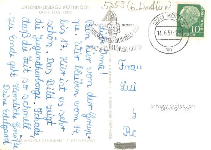 73706812 alte Postkarte Lindlar Jugendherberge Koettingen postalisch gelaufen Erhaltung siehe scans [LiesaD40] KatCode: 11110005374020