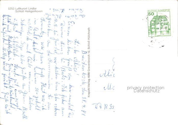 72535866 alte Postkarte Lindlar Schloss Heiligenhoven postalisch gelaufen Erhaltung siehe scans [WerneD78 kt117box] KatCode: 11110005374020