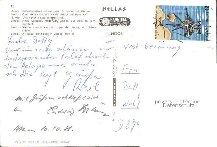 old postcard Lindos Lindo Altes Haus postalisch gelaufen Erhaltung siehe scans
