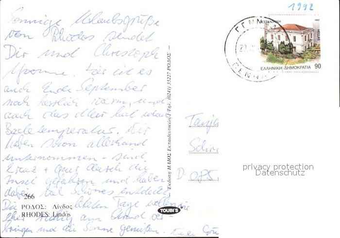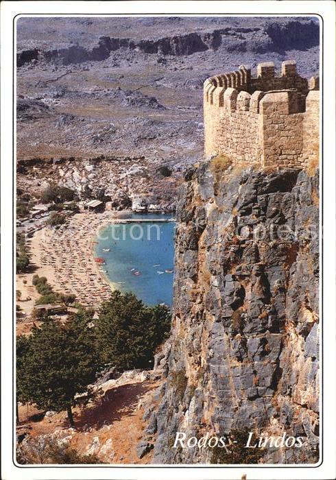 old postcard Lindos Lindo Burg mit Strand postalisch gelaufen Erhaltung siehe scans