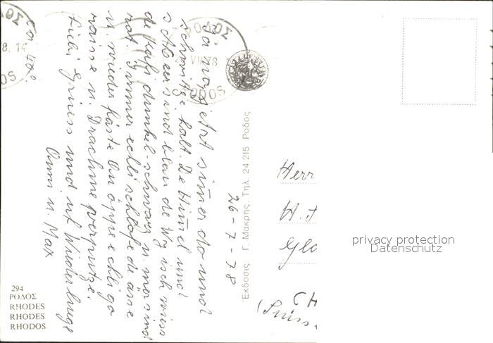 old postcard Lindos Lindo Burg Saeulen Ruinen postalisch gelaufen Erhaltung siehe scans