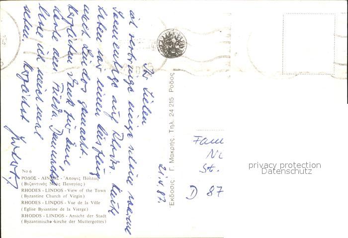 old postcard Lindos Lindo Byzantische Kirche postalisch gelaufen Erhaltung siehe scans