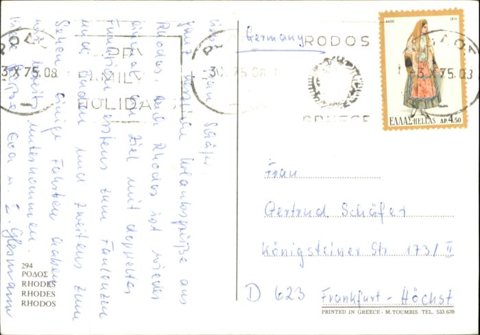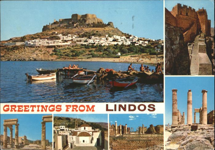 old postcard Lindos Lindo Lindos Rhodes Rhodos postalisch gelaufen