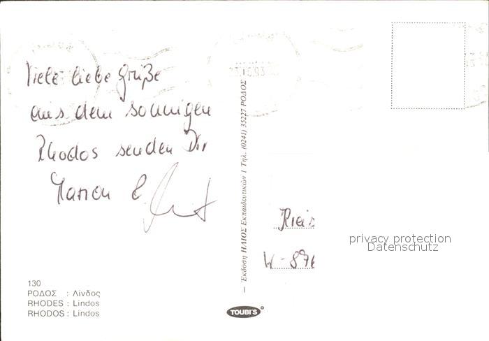 old postcard Lindos Lindo Ruine Boote postalisch gelaufen Erhaltung siehe scans