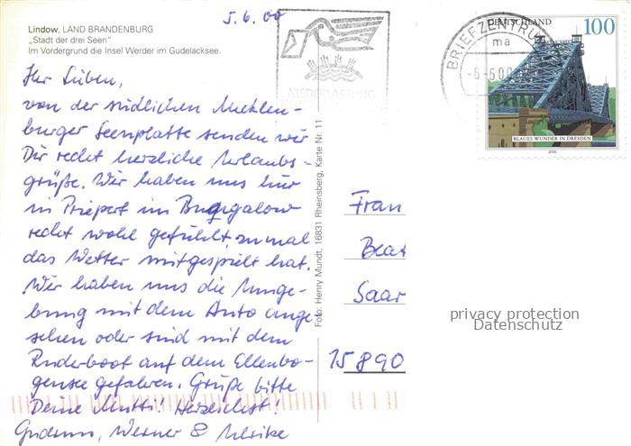 74039651 alte Postkarte Lindow Beeskow Stadt der drei Seen mit Insel Werder im Gudelacksee Fliegeraufnahme postalisch gelaufen Erhaltung siehe scans [WerneD78] KatCode: 11110012067137