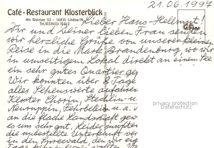 73210434 Lindow Mark Cafe Restaurant Klosterblick Seeterrasse postalisch nicht gelaufen Erhaltung siehe scans [FriedD77] KatCode: 11110012068280