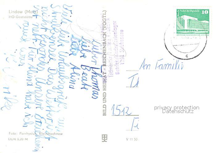73134347 alte Postkarte Lindow Mark HO Gaststaette postalisch gelaufen Erhaltung siehe scans [FriedD77] KatCode: 11110012068280