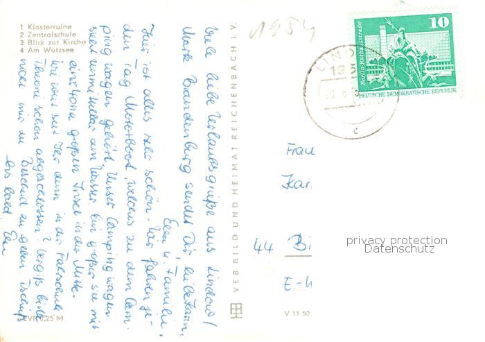 73874266 alte Postkarte Lindow Mark Klosterruine Zentralschule Blick zur Kirche Am Wutzsee postalisch gelaufen Erhaltung siehe scans [WerneD78] KatCode: 11110012068280