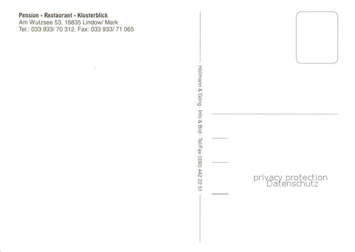 73158581 Lindow Mark Pension Restaurant Klosterblick postalisch nicht gelaufen Erhaltung siehe scans [WerneD78] KatCode: 11110012068280