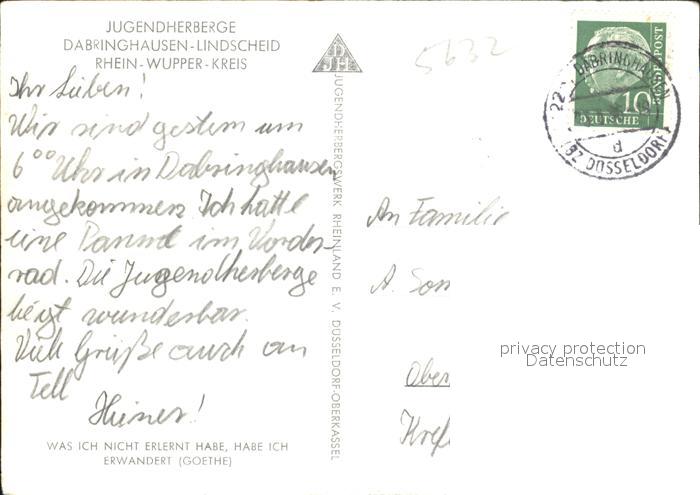 72580573 alte Postkarte Lindscheid Dabringhausen Jugendherberge postalisch gelaufen Erhaltung siehe scans [KathaD79] KatCode: 11110005374032