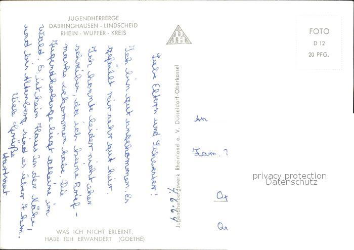 72429952 alte Postkarte Lindscheid Dabringhausen Jugendherberge postalisch gelaufen Erhaltung siehe scans KatCode: 11110005374032