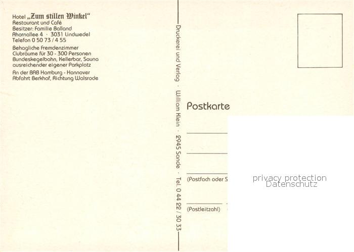 73648679 Lindwedel Hotel Zum stillen Winkel Restaurant Cafe Kegelbahn postalisch nicht gelaufen Erhaltung siehe scans [FriedD77] KatCode: 11110003358015