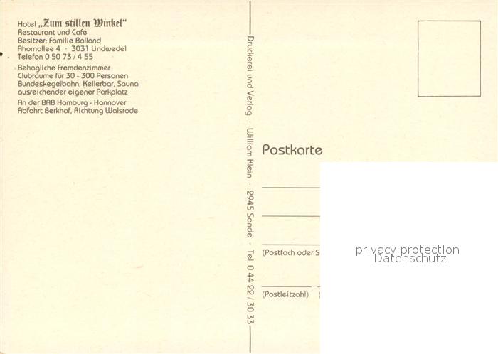 73648876 Lindwedel Hotel Zum stillen Winkel Restaurant Kegelbahn postalisch nicht gelaufen Erhaltung siehe scans [FriedD77] KatCode: 11110003358015