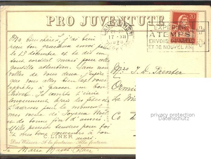 alte Postkarte Liner Carl Das Wasser Brunnen Holztrog Eimer postalisch gelaufen Erhaltung siehe scans