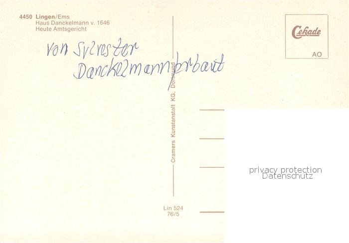 73615636 Lingen Ems Haus Danckelmann Amtsgericht postalisch nicht gelaufen Erhaltung siehe scans [WerneD78] KatCode: 11110003454032