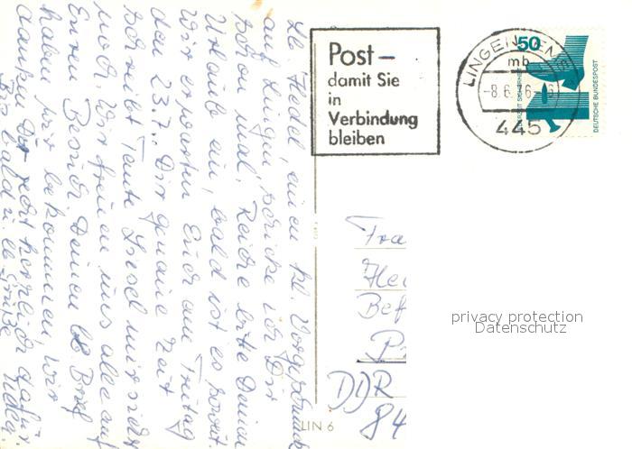 73675314 alte Postkarte Lingen Ems Kraftwerk Emspartie Park Stadtpartie Parkhaus postalisch gelaufen Erhaltung siehe scans [WerneD78] KatCode: 11110003454032