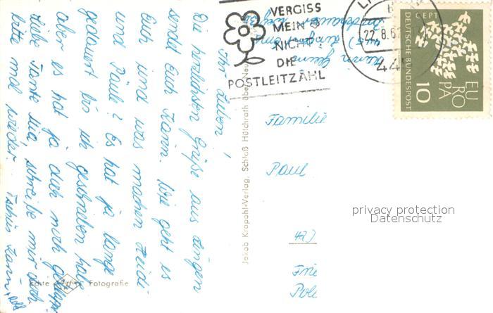 73738922 alte Postkarte Lingen Ems Markt Emspartie Ev Kirche Rathaus Ehrenmal Erdoelraffinerie Kath Kirche postalisch gelaufen Erhaltung siehe scans [WerneD78] KatCode: 11110003454032