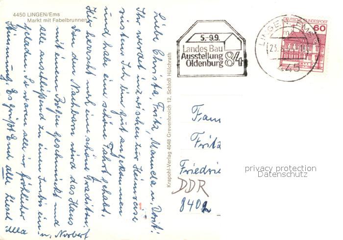73746018 alte Postkarte Lingen Ems Markt mit Fabelbrunnen postalisch gelaufen Erhaltung siehe scans [WerneD78] KatCode: 11110003454032