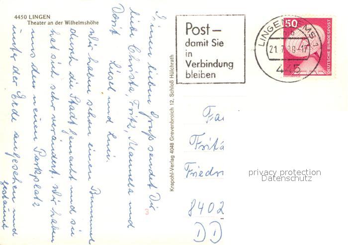 73675077 alte Postkarte Lingen Ems Theater an der Wilhelmshoehe postalisch gelaufen Erhaltung siehe scans [WerneD78] KatCode: 11110003454032