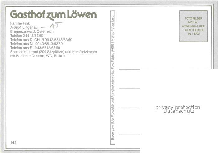 74110472 Lingenau Vorarlberg AT Gasthof zum Loewen postalisch nicht gelaufen Erhaltung siehe scans [WerneD78] KatCode: 11390341080225