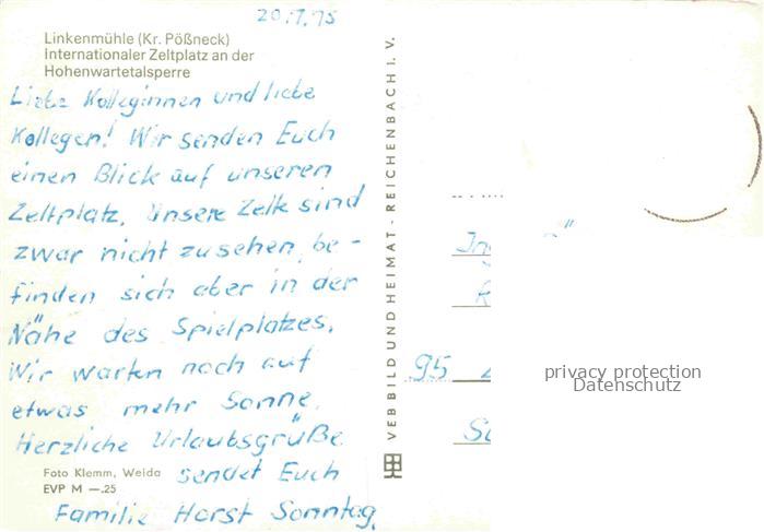 74112865 alte Postkarte Linkenmuehle Goessitz Thueringen Zeltplatz an der Hohenwartetalsperre postalisch gelaufen Erhaltung siehe scans [FriedD77] KatCode: 11110016075035