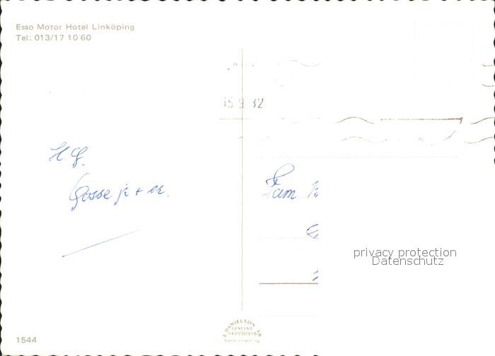 old postcard Linkoeping Esso Motor Hotel Exterioer Reception Taverna Matsal postalisch gelaufen Erhaltung siehe scans