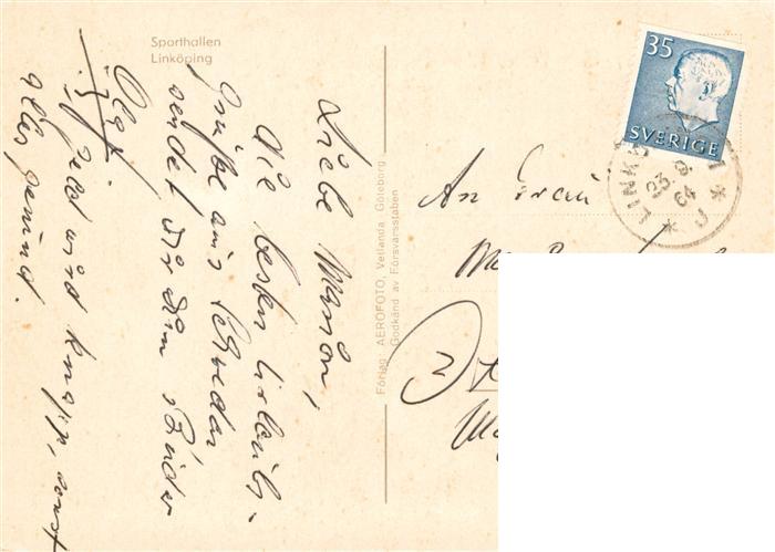 old postcard Linkoeping Sweden Sporthallen Fliegeraufnahme postalisch gelaufen Erhaltung siehe scans [WerneD78]