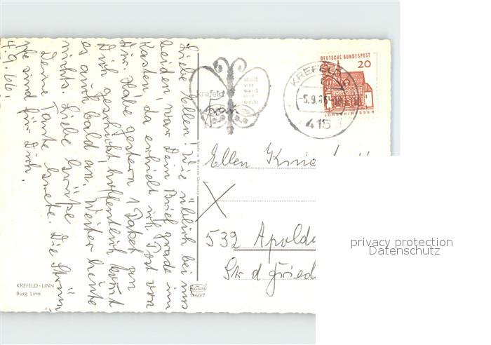 72255201 alte Postkarte Linn Krefeld Burg Linn postalisch gelaufen Erhaltung siehe scans KatCode: 11110005114000