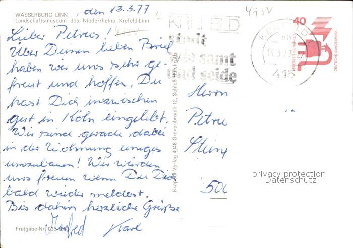 71937785 alte Postkarte Linn Krefeld Wasserburg Linn postalisch gelaufen Erhaltung siehe scans KatCode: 11110005114000