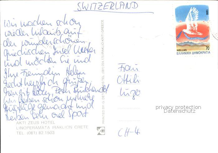 old postcard Linoperamata Akti Zeus Hotel Strand Fliegeraufnahme postalisch gelaufen Erhaltung siehe scans