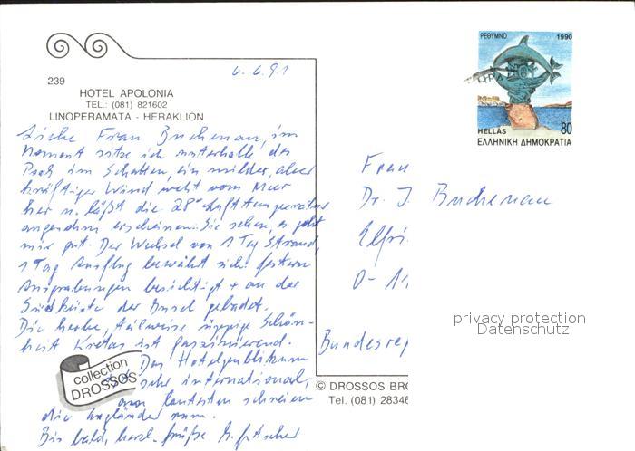 old postcard Linoperamata Apolonia Hotel Swimming Pool Strand Windsurfing postalisch gelaufen Erhaltung siehe scans