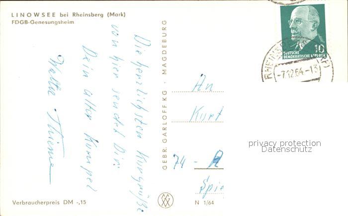 72062494 alte Postkarte Linowsee FDGB Genesungsheim postalisch gelaufen KatCode: 11110012068353