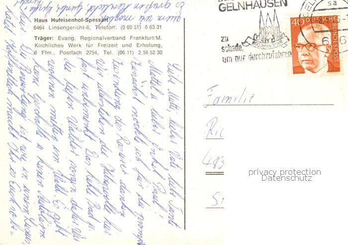 73858782 alte Postkarte Linsengericht Haus Hufeisenhof-Spessart postalisch gelaufen Erhaltung siehe scans [FriedD77] KatCode: 11110006435018