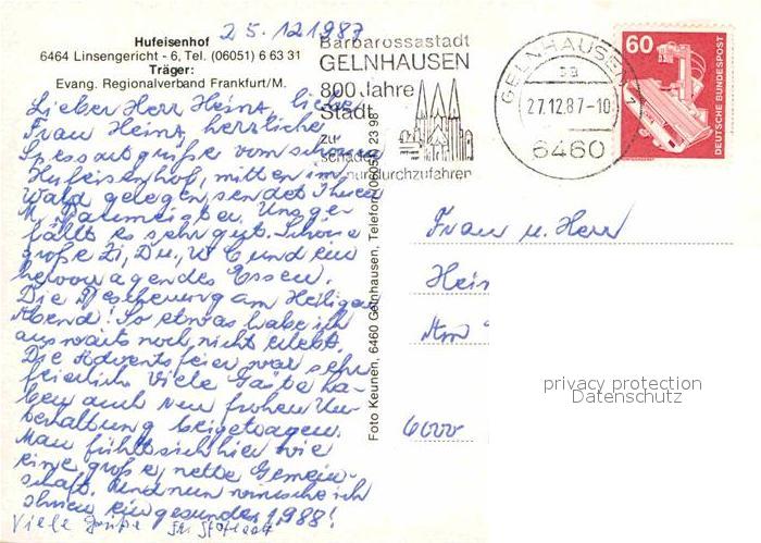 72667255 alte Postkarte Linsengericht Hufeisenhof postalisch gelaufen Erhaltung siehe scans [LiesaD40] KatCode: 11110006435018