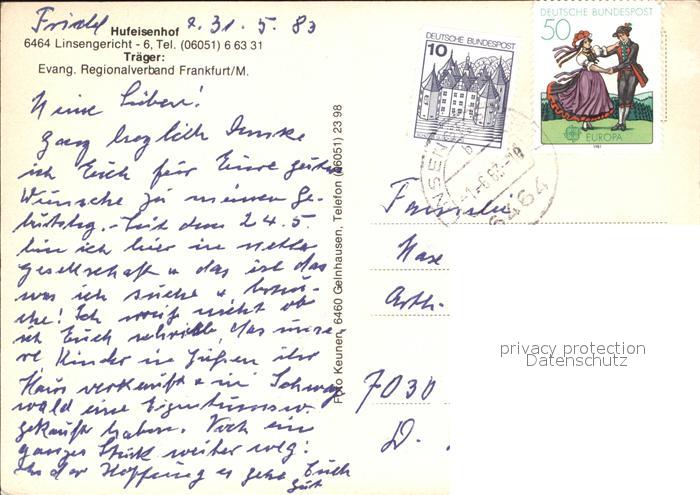 72497441 alte Postkarte Linsengericht Hufeisenhof postalisch gelaufen Erhaltung siehe scans KatCode: 11110006435018