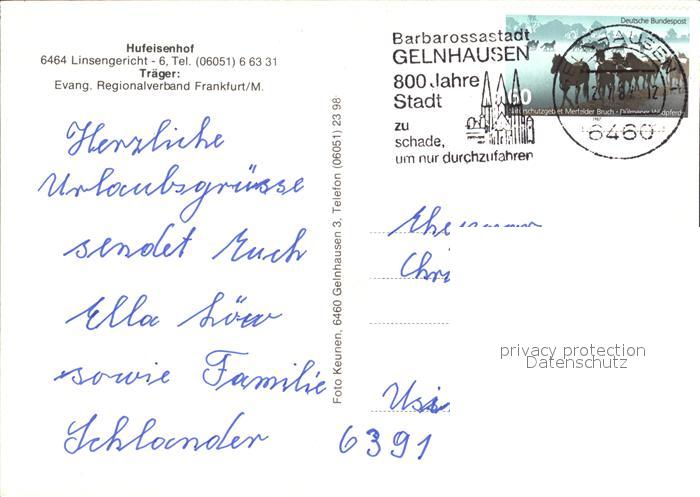72415681 alte Postkarte Linsengericht Hufeisenhof postalisch gelaufen Erhaltung siehe scans KatCode: 11110006435018